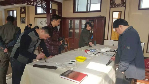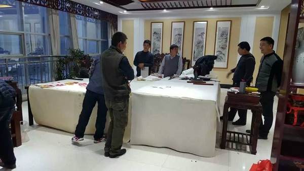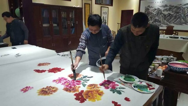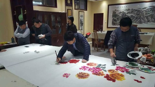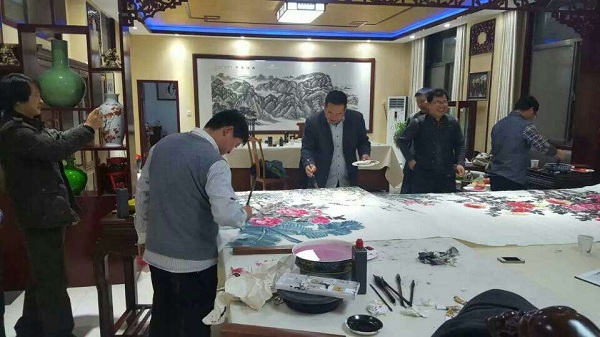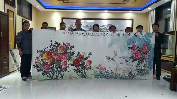 区青年美协组织成员到山东方达再生资源利用有限公司进行书画交流,其间共同合作一张目前最大尺幅作品:一丈二国画作品〈盛世花开〉共欣赏!